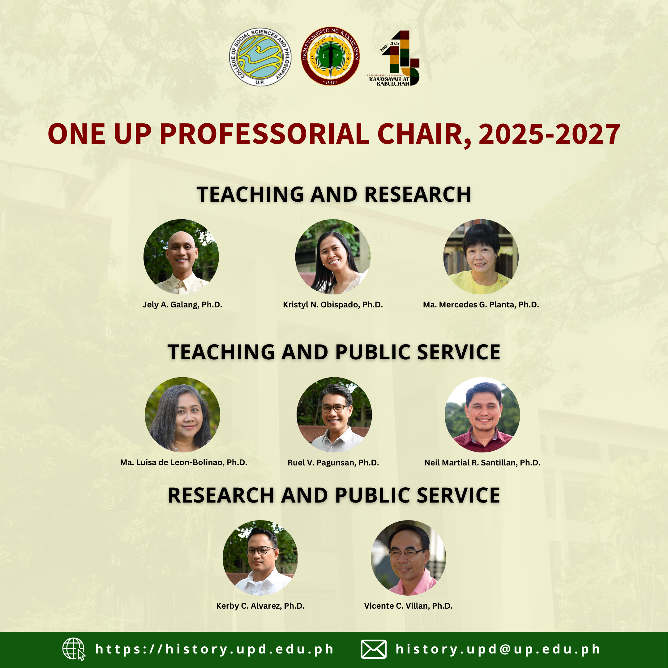 Binabati ng UP Departamento ng Kasaysayan ang lahat ng kaguruan na nakatanggap ng 𝗢𝗻𝗲 𝗨𝗣 𝗣𝗿𝗼𝗳𝗲𝘀𝘀𝗼𝗿𝗶𝗮𝗹 𝗖𝗵𝗮𝗶𝗿 para sa taong 2025-2027.