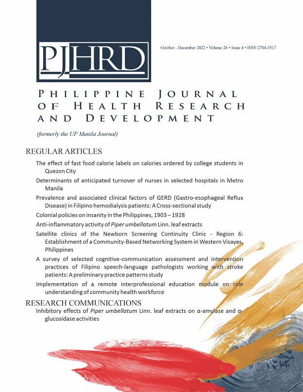 | Colonial Policies on Insanity in the Philippines, 1903-1928 | Philippine Journal of Health Research and Development | Francis Justine M. Malban | insanity, Insane Department, San Lazaro Hospital, insanity law, colonial policies, Philippines | 2022 |